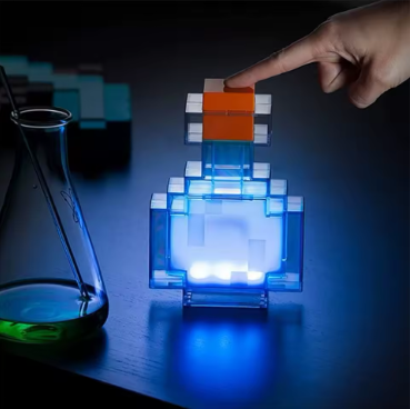 Obtienes la Lámpara incluye un cable de carga USB y una caja personalizada con estilo Minecraft — todo lo que necesitas para empezar a disfrutarla de inmediato.